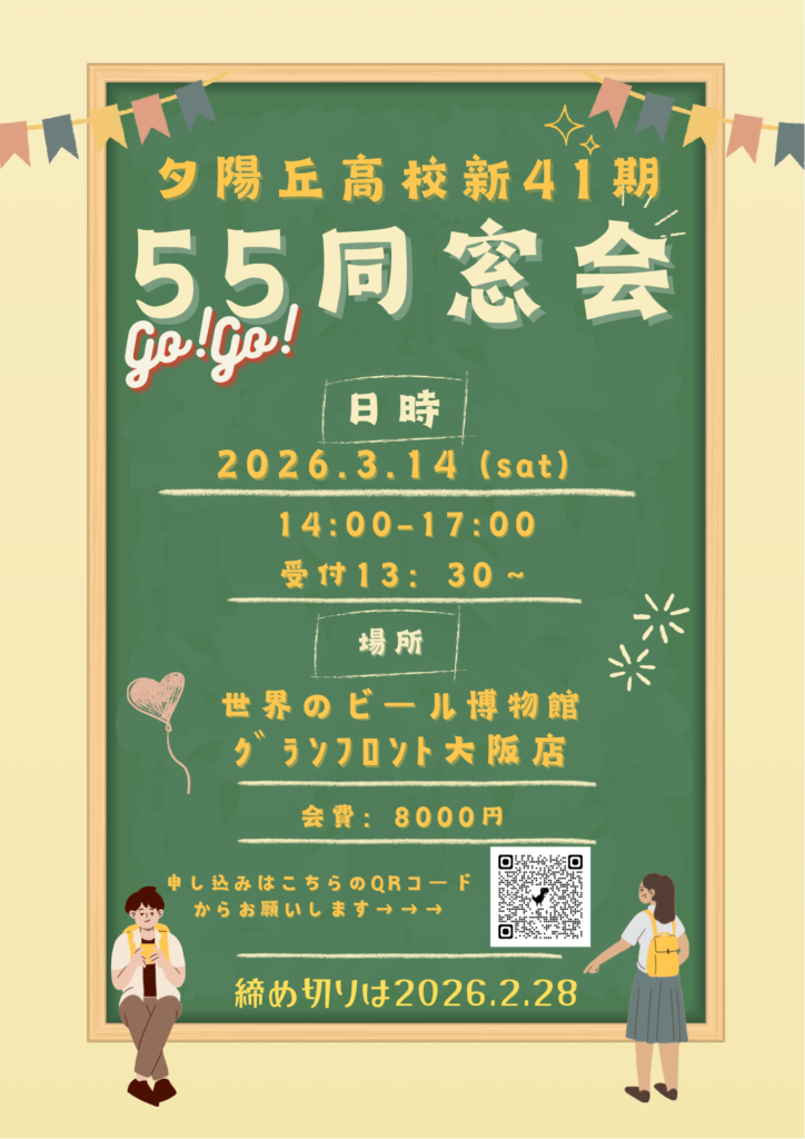 新41期「55同窓会」の詳細が決定しました。